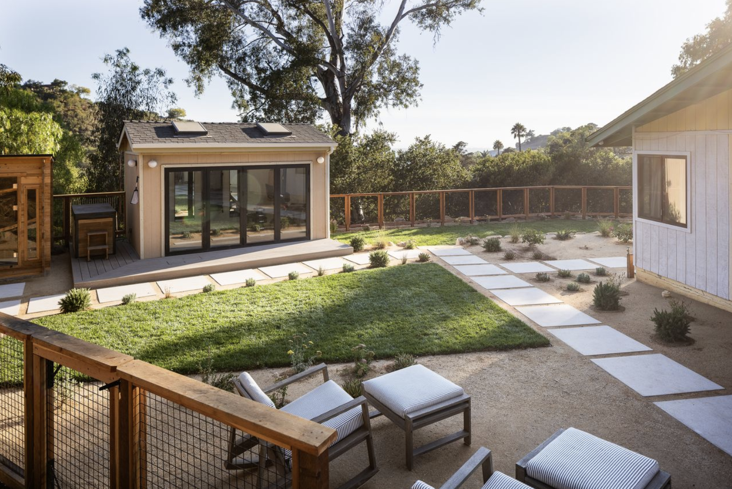 Perched in the foothills above Santa Barbara, the Las Canoas residence sits amid the raw beauty of Mission Canyon — where sweeping mountain views meet the hum of untamed wilderness. The homeowners, surrounded by coyotes, bobcats, deer, and rattlesnakes, wanted a landscape that embraced the natural environment while creating a safe and livable space for their young family and three dogs.